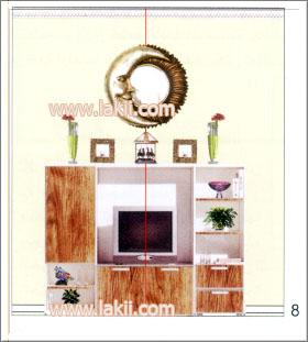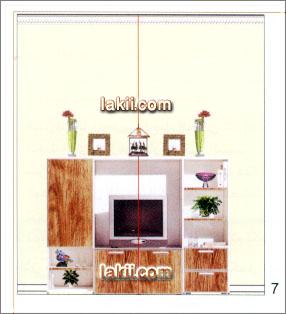 العين , بحيث نرى الحائط من الأرض حتى السقف , بما أننا استعملنا التلفزيون كتركيز في هذه الصالة فسنحدد خط الطول لهذا الحائط في نصف المكتبة , صورة رقم ( 7) قمنا برسم خط وهمي طولي يقسم مكتبة التلفزيون إلي نصفين حتى نستطيع ترتيب وصف ما سيتم وضعهحول هذا الخط …وهذا ما يسمى ( بالخط الطولي للحائط ) في الصورة رقم ( 7 ) ما تم وضعه من إكسسوارات لا يعطي الناظر الرؤية الكاملة حتى السقف , وعليه سيكون هناك شي ناقص ؟؟؟؟ (يوجد هناك فراغ كبير ) ..