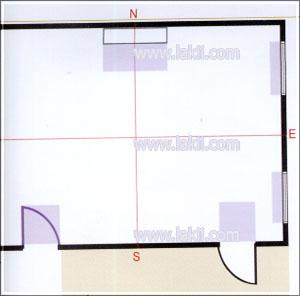 هذا أسهل سؤال :خذ مسطرة وارسم خط رأسي وخط أفقي في صف الغرفة وذلك بتقسيم أرضية الغرفة إلى نصفين طولي ونصفين عرضي كما هو في الصورة رقم ( 1 )